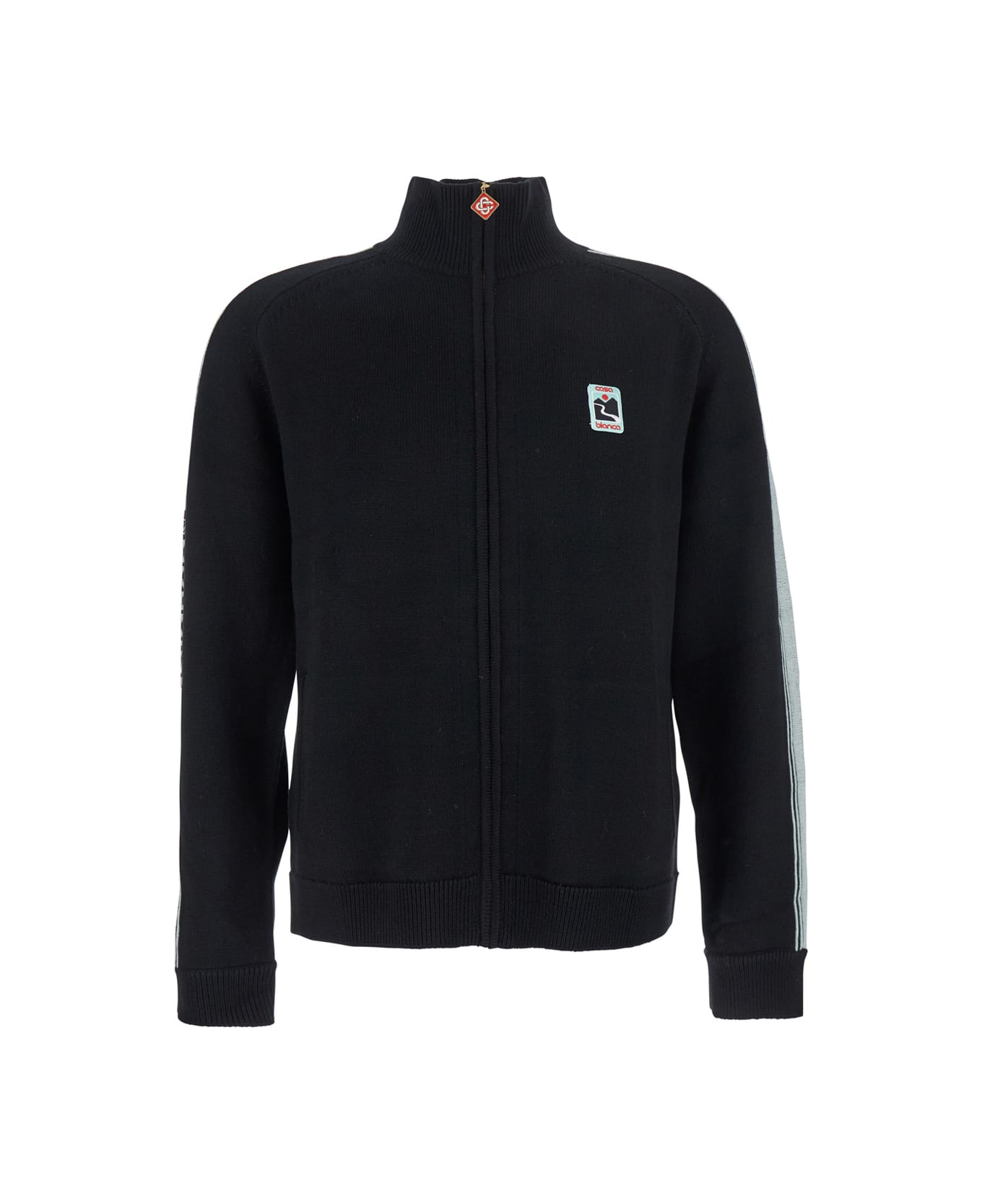 Sweatshirt Black High neck Long sleeves Zip closure Logo patch on the front Ribbed design Ribbed hem and cuffs Wool Regular fit Composition: 100% Merino Wool Color: Black Model number: MPF25KW100301MERINO