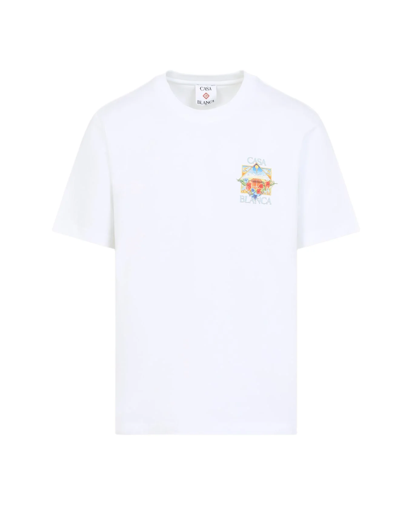 Casablanca Flower Court Icon White Cotton T-shirt. Crafted from white cotton jersey, featuring a round ribbed neckline, logo on the chest and on the back, short sleeves, and a straight hem. Made in: Portugal Color: White Model number: MSS26JTS00113WHITE