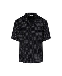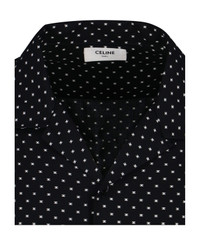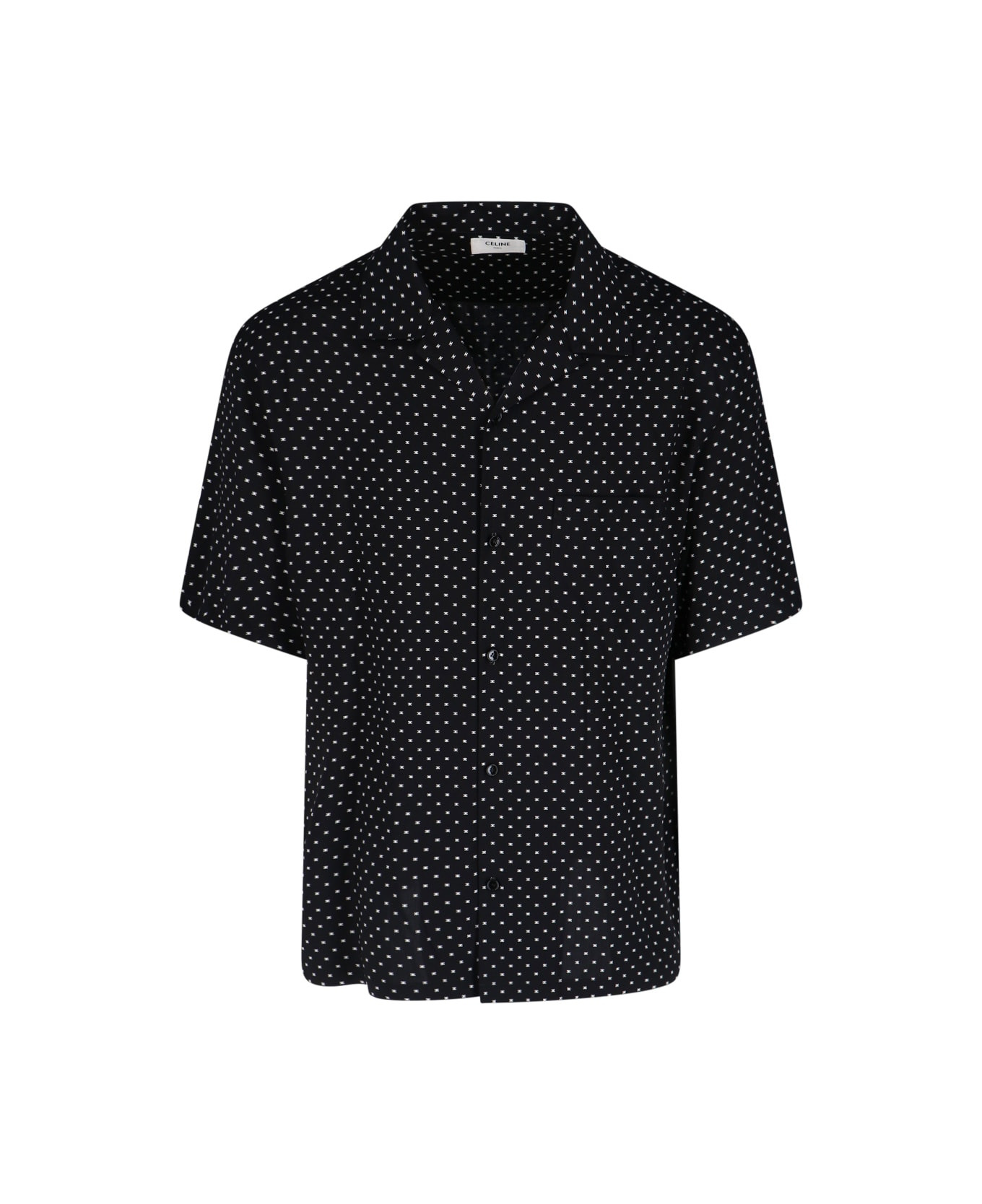 Celine logo Hawaiian shirt in black viscose with contrasting 'Triomphe' logo pattern, camp collar, short sleeves, button closure, straight hem. Composition: 100% Viscose Composition: _, 100% Viscose Made in: Portugal Color: Black Size and fit: - vestibilita morbida Model number: 2C946313V38CE
