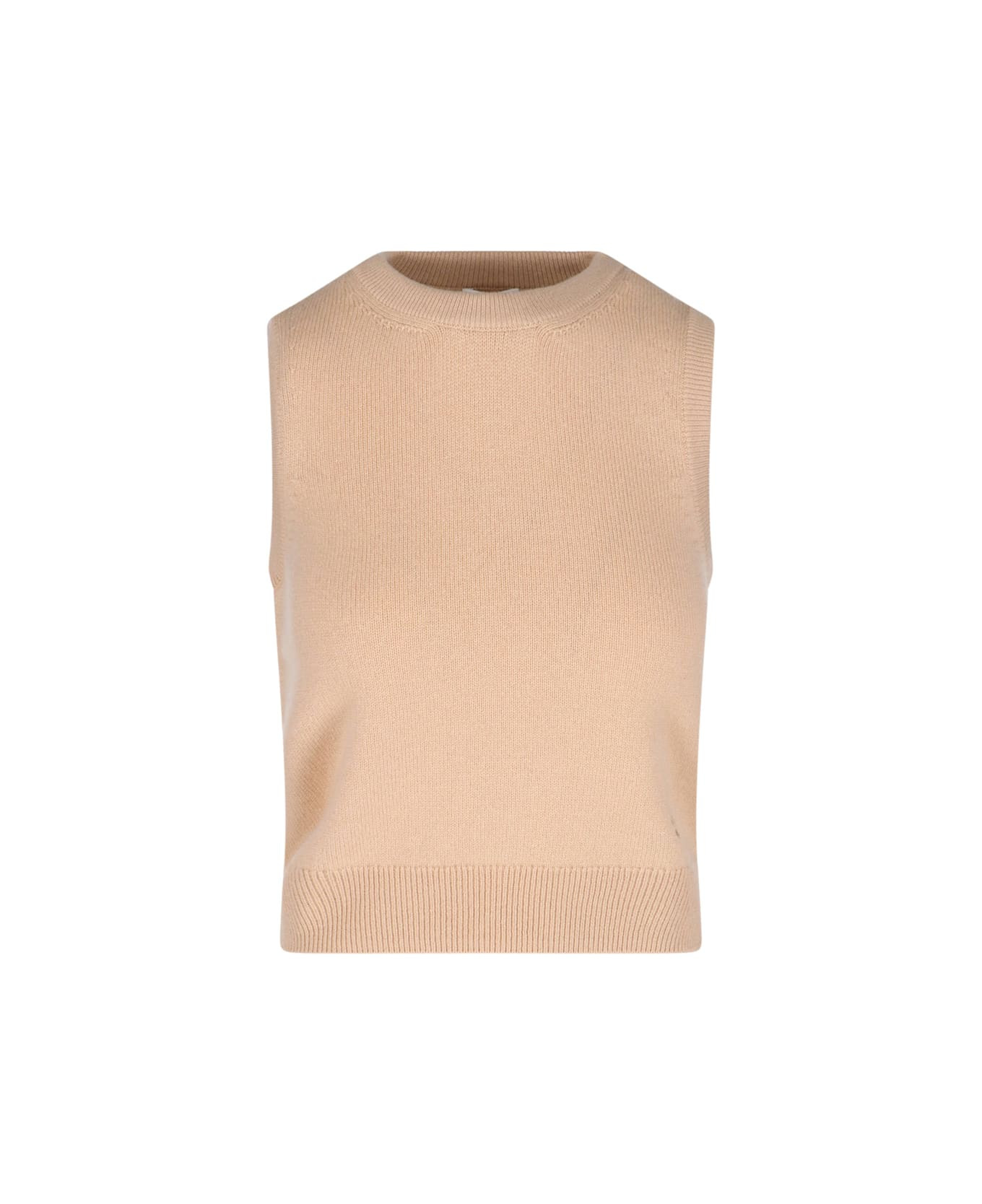Celine knitted tank top in beige cashmere with crew neck, ribbed trim, straight hem. Composition: 100% Cashmere Made in: United Kingdom Color: Beige Size and fit: - vestibilita regolare Model number: RY067977V03PI