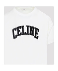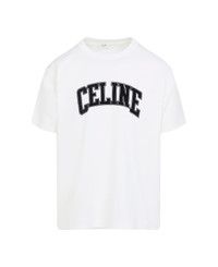 Celine Off White Cotton Loose T-Shirt. Pure off white cotton t-shirt, round neck, chest contrasting black lettering logo, dropped shoulders, short sleeves, straight hem, tonal stitching. Made in: Italy Color: OFF WHITE / BLACK Model number: RX0AY671Q01OB