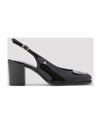 Celine Black Calf Leather Perforated Triomphe Sling back. Pure black calf leather sling back, squared toe, top perforated signature triomphe detail, adjustable ankle strap, wide heel, tonal sole. Made in: Italy Color: No Black Size and fit: - Heel Hight: 6,5cm Model number: 36215458238NO