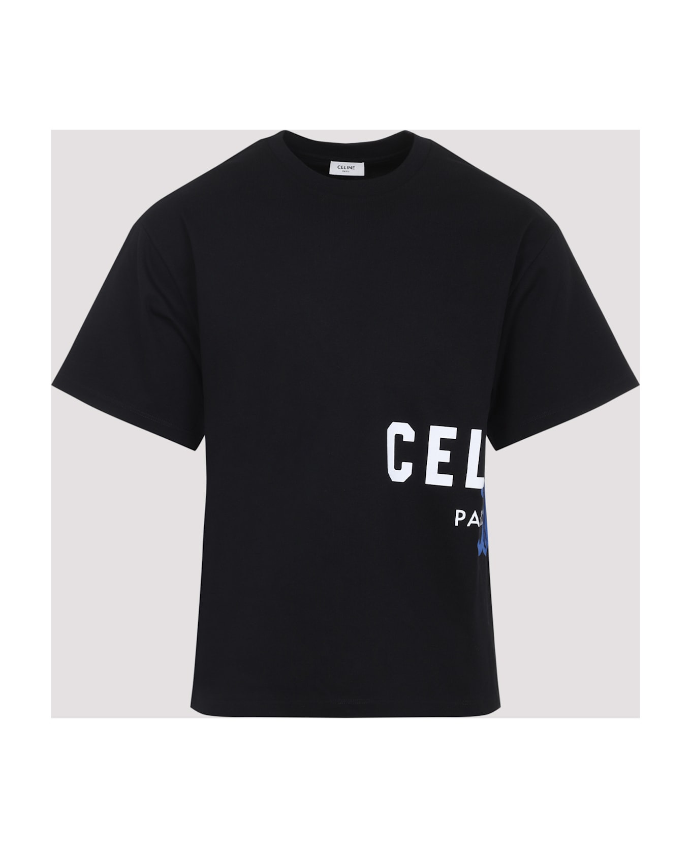 Celine Relaxed Black Cotton T-shirt. Crafted from black cotton jersey, round neckline, logo print at the side, dropped shoulders, short sleeves, relaxed fit. Made in: Italy Color: Black White Blue Model number: RX0HV1242GDU0