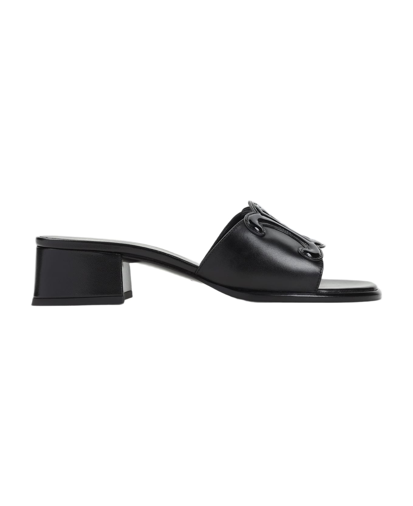 Celine Black Leather Triomphe 40 Mule. Pure black lamb leather mule, round opened toe, top tonal leather strap, top tonal patent calf leather signature logo, slip-on style, squared heels, tonal sole. Made in: Italy Color: No Black Size and fit: - Heel Hight: 4cm Model number: 362355045C38NO