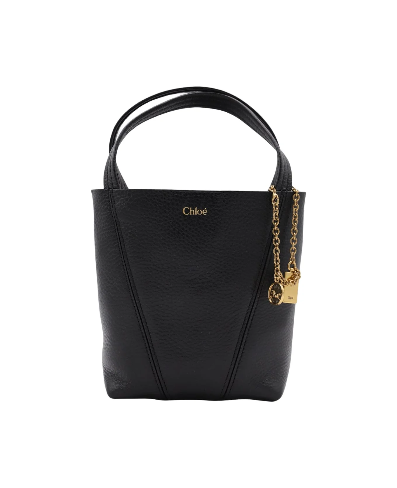 Black leather Spin tote from Chloe featuring top handles, frontal logo, gold tone detail, adjustable strap, magnetic fastening and pocket. Made in: Italy Color: Black Model number: CH25SS812N84001