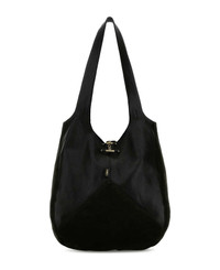 Black Suede And Leather Balloon Shopping Bag