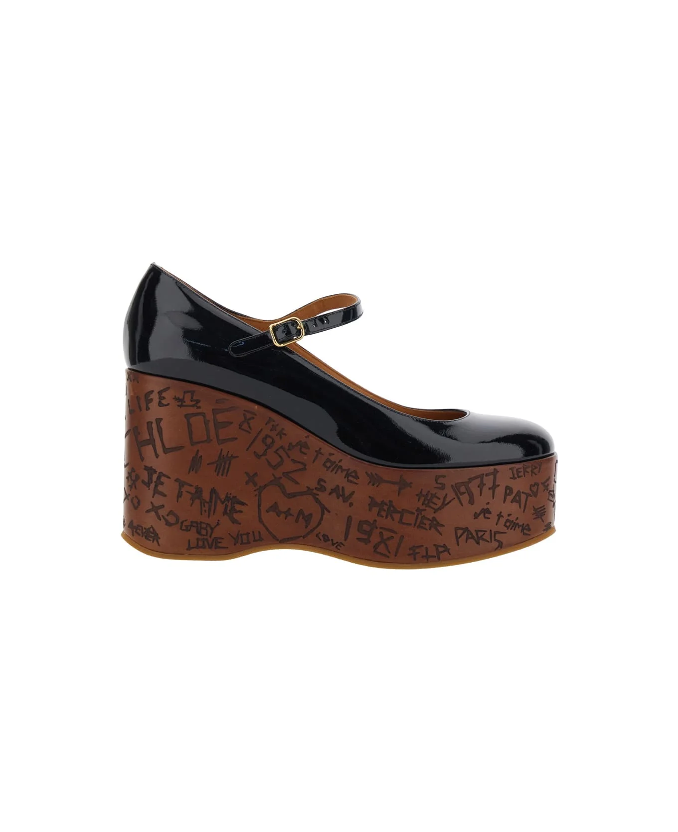 Black Wedges With Mary Jace Ankle Strap And High Wedge Heel In Leather Woman