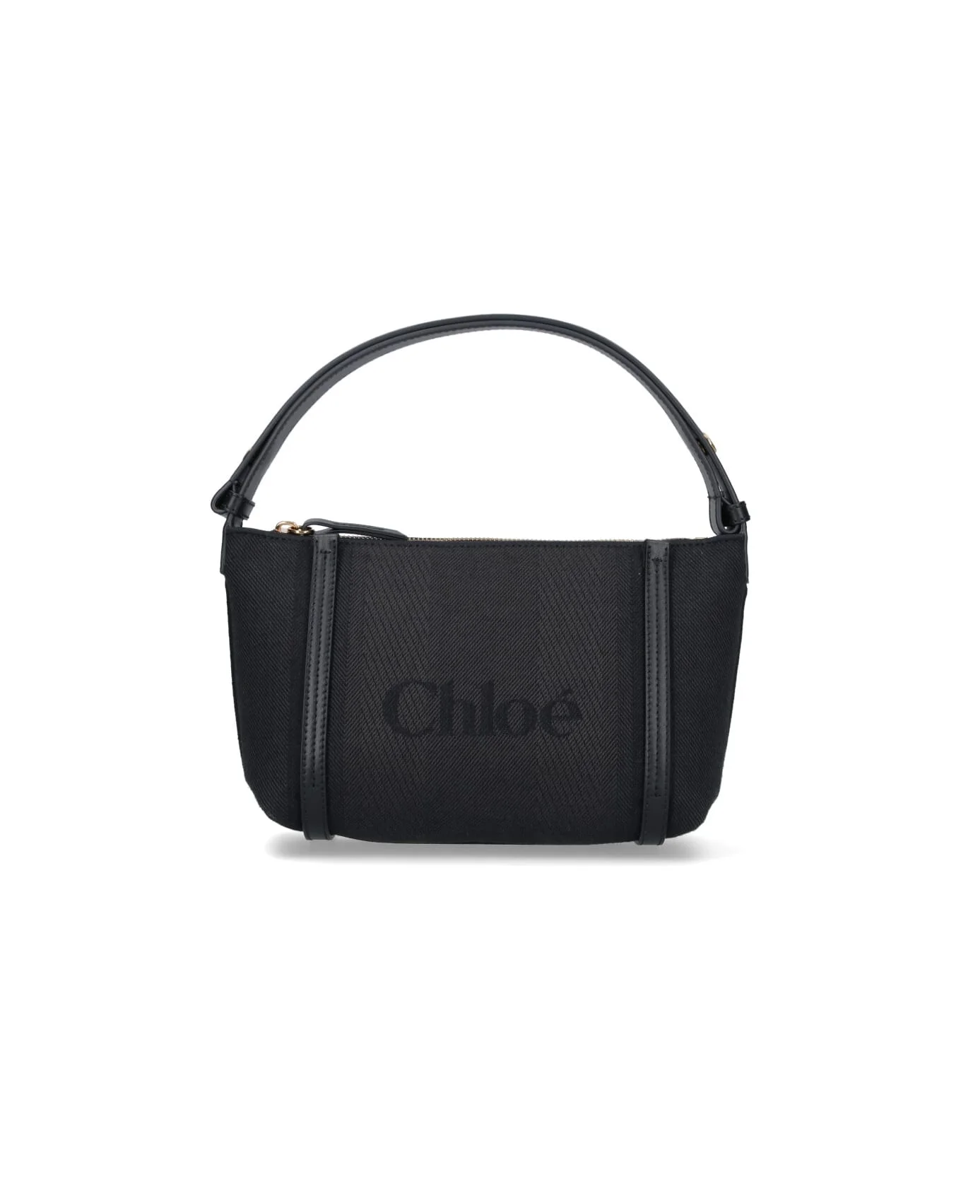 Chloe Carry shoulder bag in black cotton blend with calf leather trim, adjustable handle, zip closure, logo embroidery on the front and back, inner flat pocket, single inner compartment. Composition: 91% Cotton, 6% Polyester, 3% Other Fibers Made in: Italy Color: Black Size and fit: - A 14.5 x L 23.5 x P 10 cm Model number: 25UP566O65001