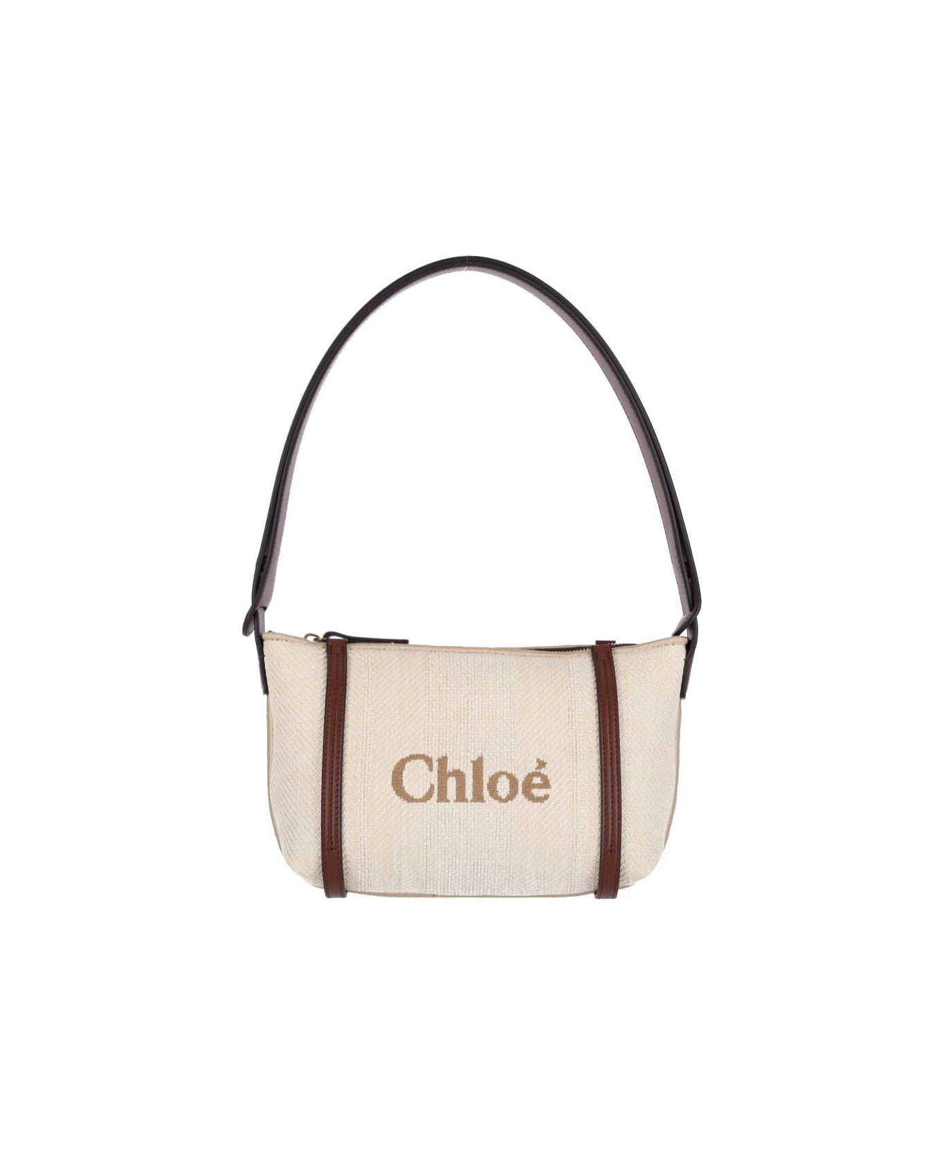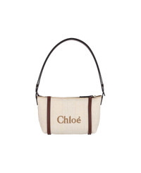 Chloe Carry shoulder bag in cream cotton blend with calf leather trim, adjustable handle, zip closure, logo embroidery on the front and back, inner flat pocket, and single inner compartment. Composition: 69% Cotton, 31% Polyamide Made in: Italy Color: Cream Size and fit: - A 14.5 x L 23.5 x P 10 cm Model number: 25UP566P3824P