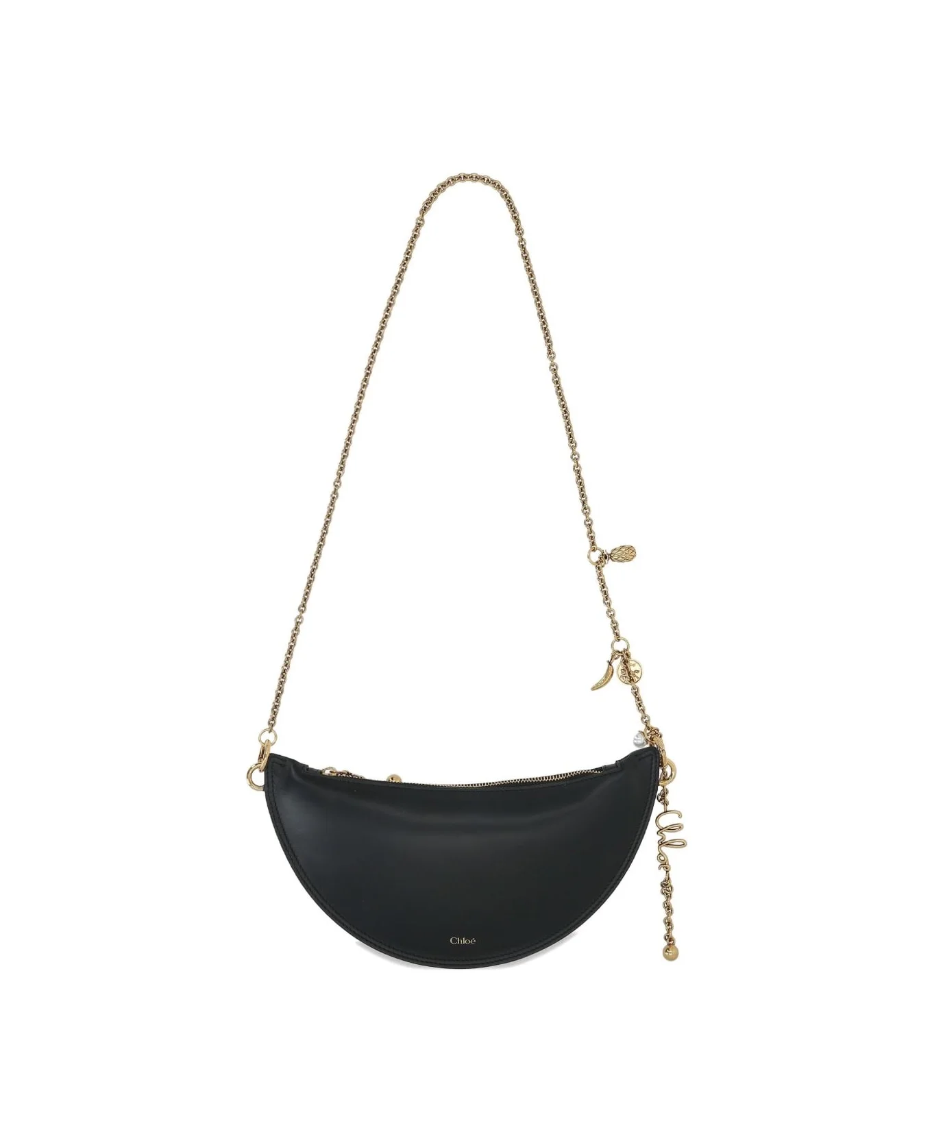black half-moon shape chain strap gold-tone charms zip fastening leather Composition: 100% Leather Lamb Made in: Italy Color: Black Model number: CH25WP124P80001