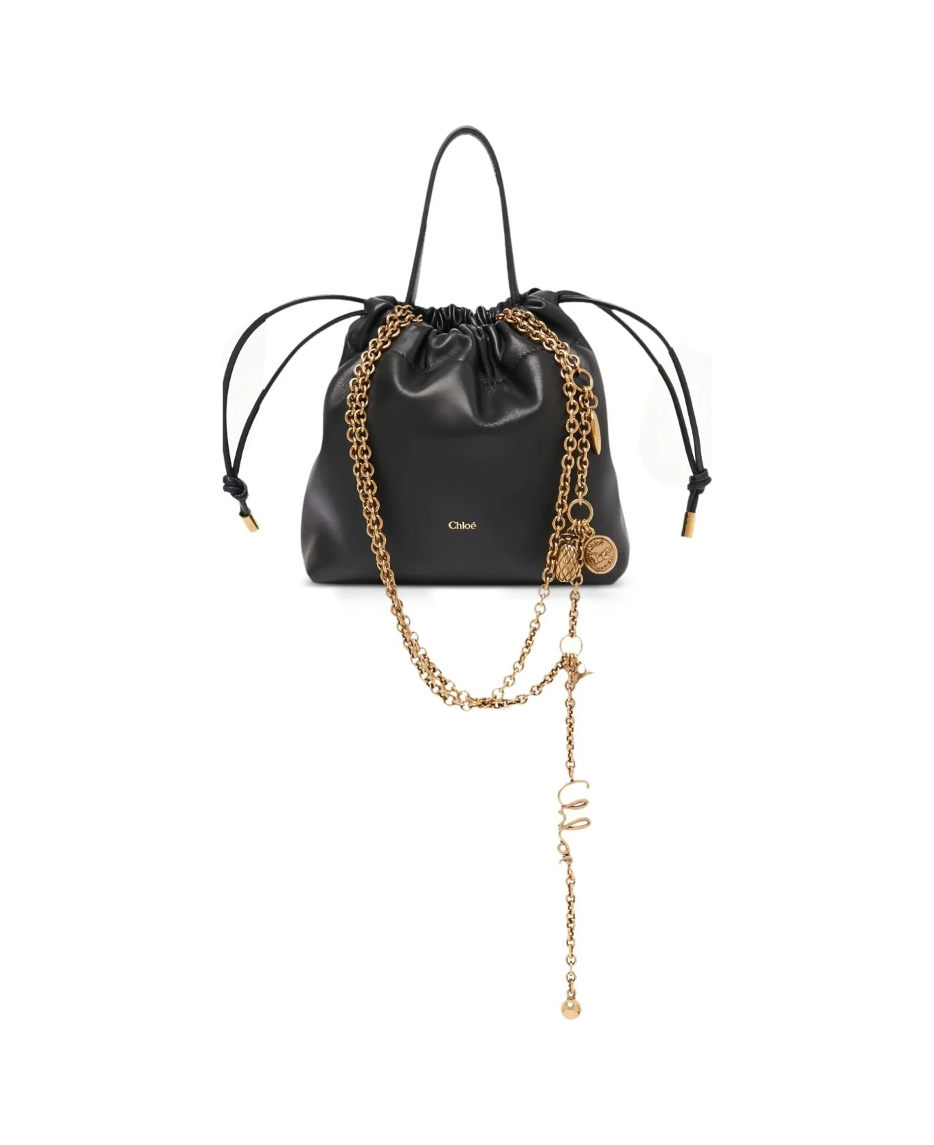 black chain embellishment drawstring fastening top handle charms embellishments logo motif Composition: 100% Leather Lamb Made in: Italy Color: Black Model number: CH26SP126R12001