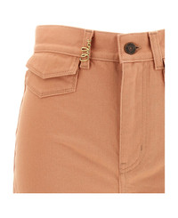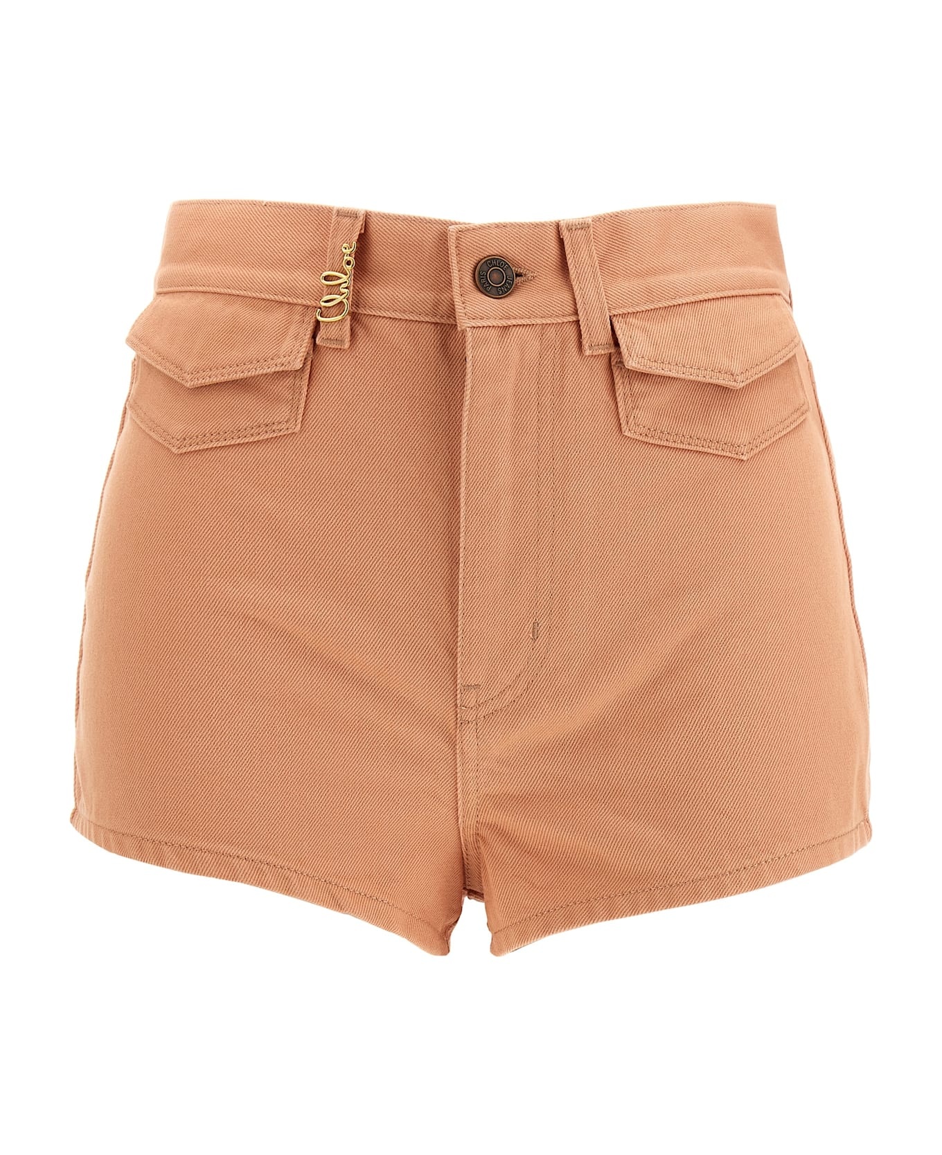 Garment-dyed cotton denim shorts, front metal 'Chloe' logo detail, zip and button closure, pockets, and leather logo label on the back. Composition: 100% cotton Made in: Italy Color: Orange Size and fit: - true to size fit FRENCH size Model number: CH25UDS0125281H