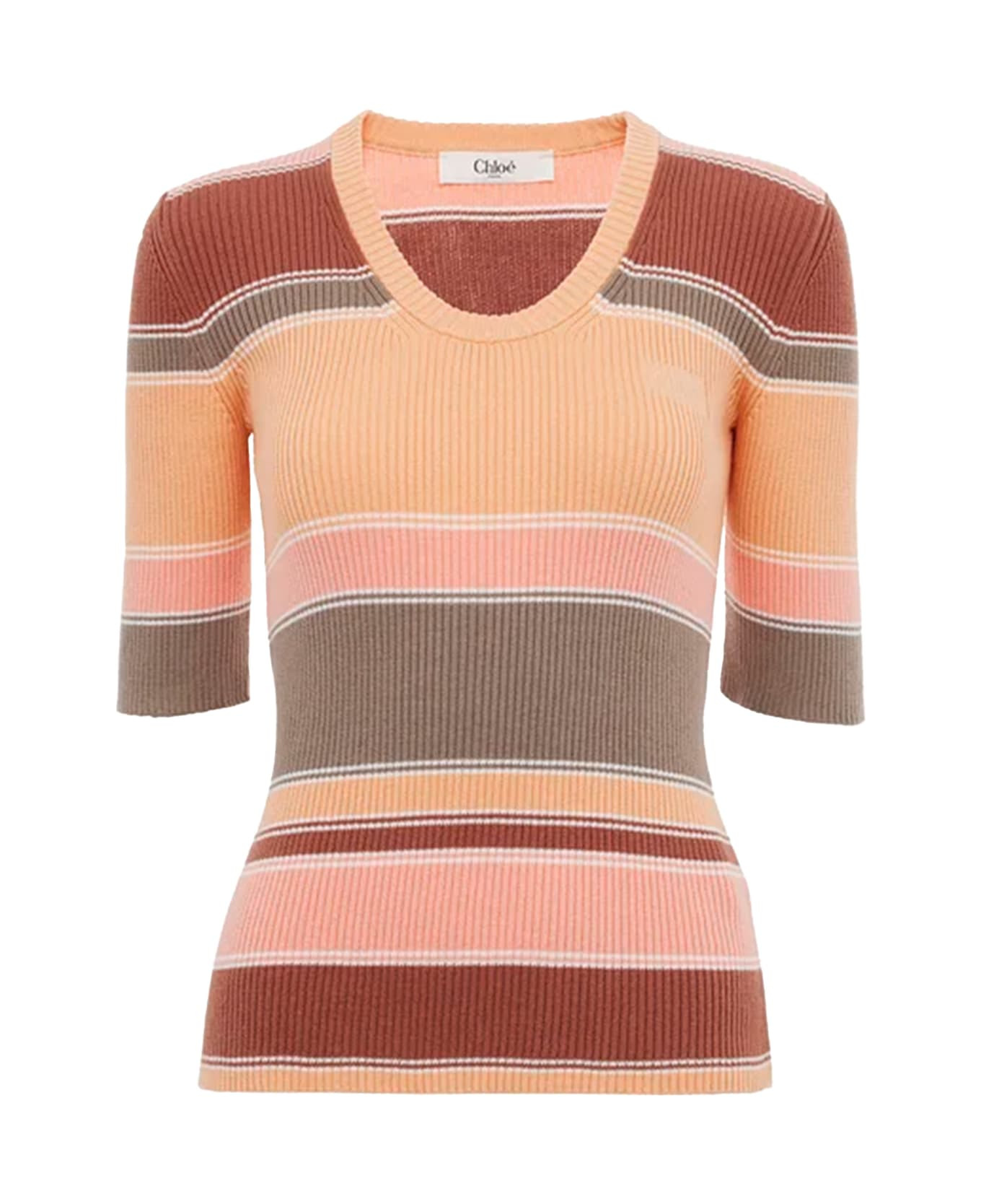 ELBOW-SLEEVE FITTED LOGO TOP IN COTTON KNIT