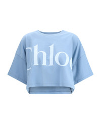 Chloe's cropped t-shirt is a garment with a modern and relaxed style. featuring a short, contemporary cut, it flaunts the iconic logo printed on the front, emphasizing the brand's identity. the wide sleeves and dropped shoulders lend a comfortable and trendy silhouette. the ribbed crew neck completes the design, adding a classic touch. perfect for a casual-chic look, this t-shirt expresses chloe's bohemian and sophisticated femininity. Composition: 100% % Cotton Made in: Italy Color: Clear Blue Size and fit: - This piece fits true to size. We recommend you get your regular size - Model is 1,75m / 5ft 8in wearing size S Model number: CH25AJH0918340Q