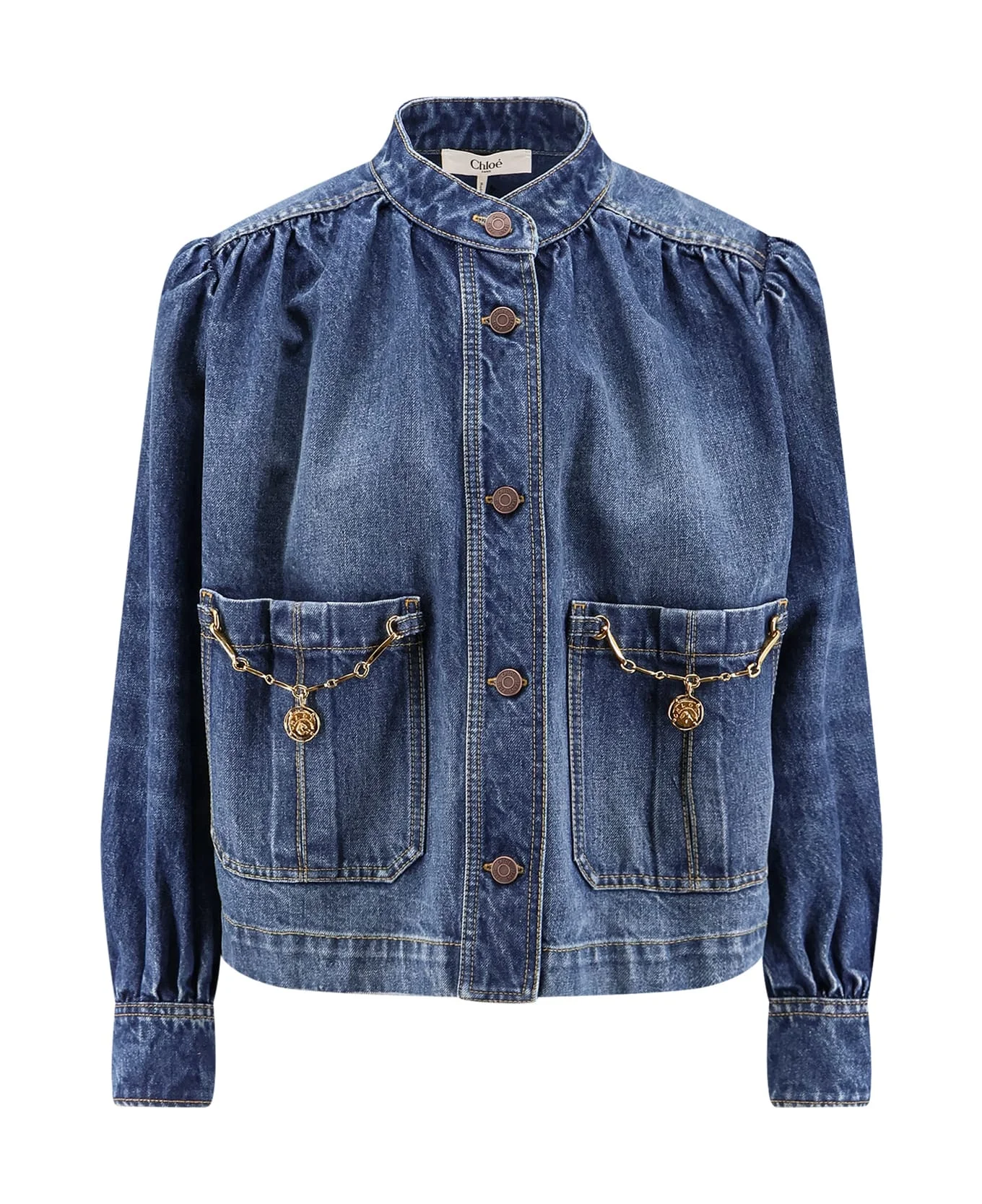 Crew neck Metal button closure Gathered trim Front patch pockets Brass chains and Horse medals Made in Italy 100% organic cotton SKU: CH26SDV092584A1 Made in: Italy Color: Faded Indigo Model number: CH26SDV092584A1