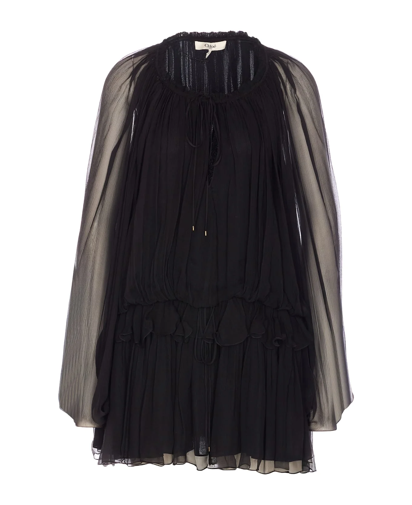MINI CAPE DRESS IN SILK MOUSSELINE