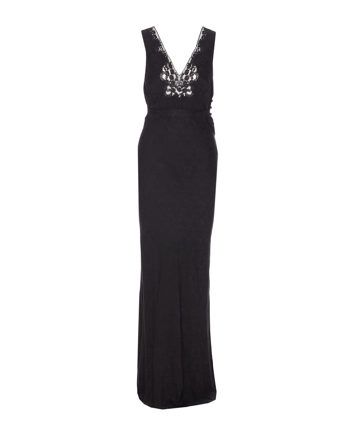 SLEEVELESS COLUMN DRESS IN SILK JACQUARD & LACE