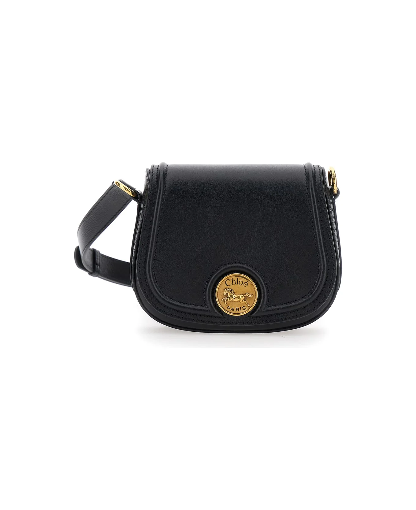 'horse Medal' Black Shoulder Bag With Adjustable And Removable Shoulder Strap And Logo Plaque On The