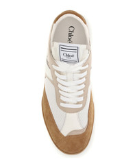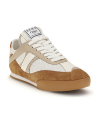 The kick sneakers by chloe are inspired by the worlds of ballet and boxing. made from recycled technical mesh and a mix of smooth and suede calfskin, they feature an updated design with a lighter silhouette and the chloe logo embossed on the sides and back. comfortable and functional, they combine a recycled sole with an inner wedge for added height and support. the boxing-style label with the chloe logo completes the look with a distinctive touch. Composition: 60% % Calf Leather Bos Taurus, 40% % Polyester, 100% % Rubber Made in: Italy Model number: CH25W07IVD25X