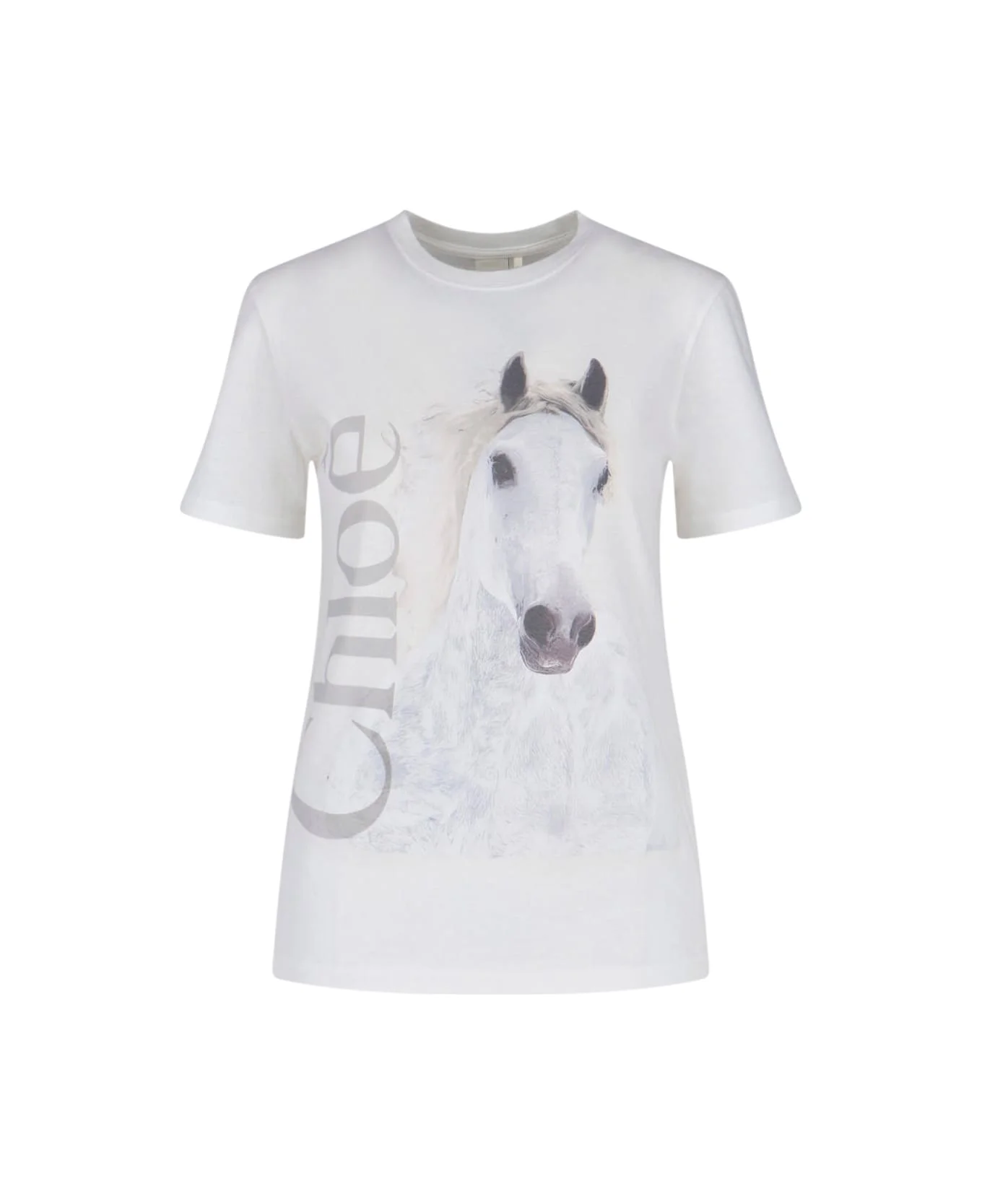 Chloe logo t-shirt in white organic cotton with crew neck, short sleeves, contrasting printed logo on the front, straight hem. Composition: 100% Organic Cotton Made in: Portugal Color: White Size and fit: - vestibilita regolare - Model number: 26SJH11802101
