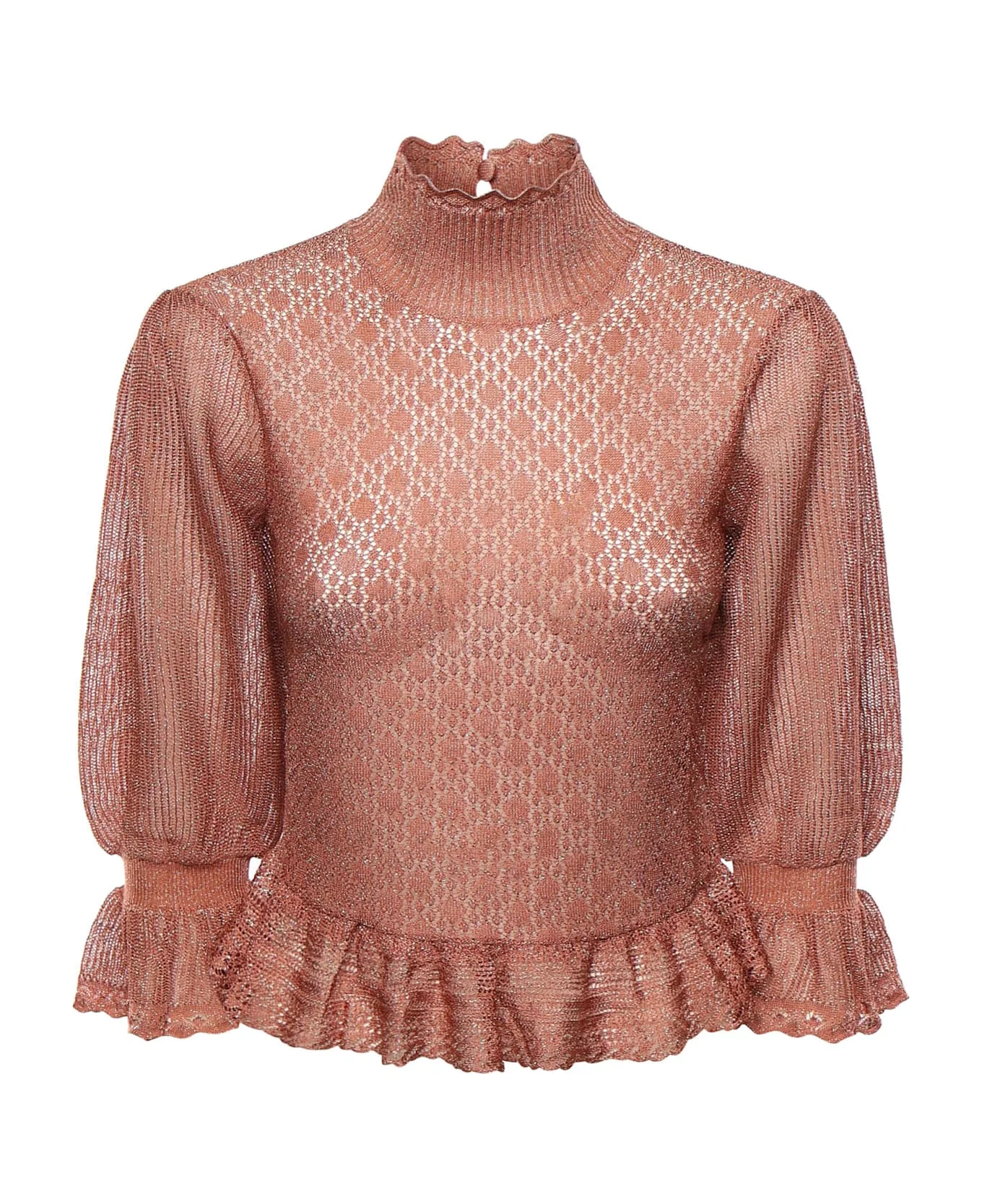 Lurex Knit Sweater With Ruffle