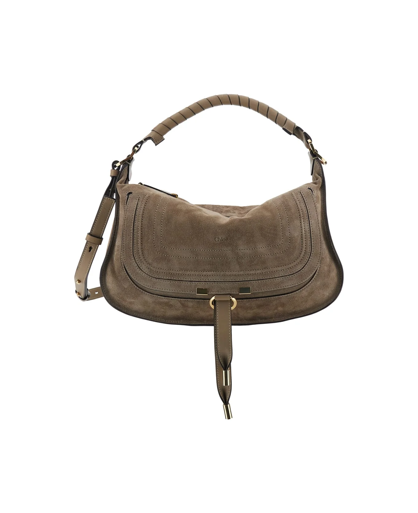 'marcie Medium' Brown Shoulder Bag With Logo Lettering On The Front In Suede Woman