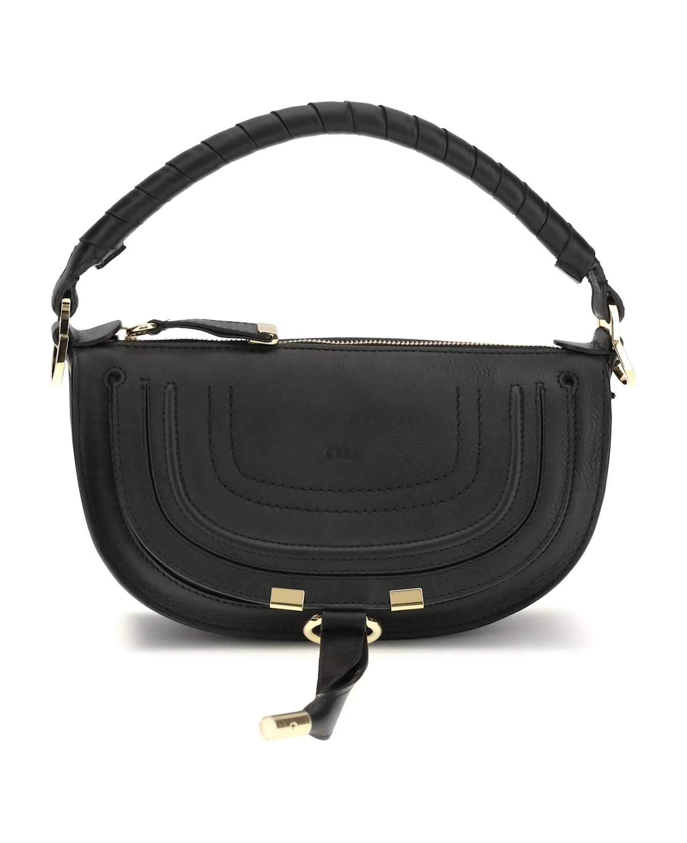 The marcie mini shoulder bag by chloe is crafted from smooth calfskin and reinterprets the iconic daytime model with a casual and elegant silhouette. saddle stitching, a hand-wrapped handle and gold metal details define the design, complemented by leather tassels on the flap. functional and versatile, it features a main compartment with interior pockets, an adjustable and removable shoulder strap and a zipper closure. Composition: 100% % Calf Leather Bos Taurus Made in: Italy Size and fit: - W 25 x H 15 x D 7 cm Model number: CH26SP927R35001