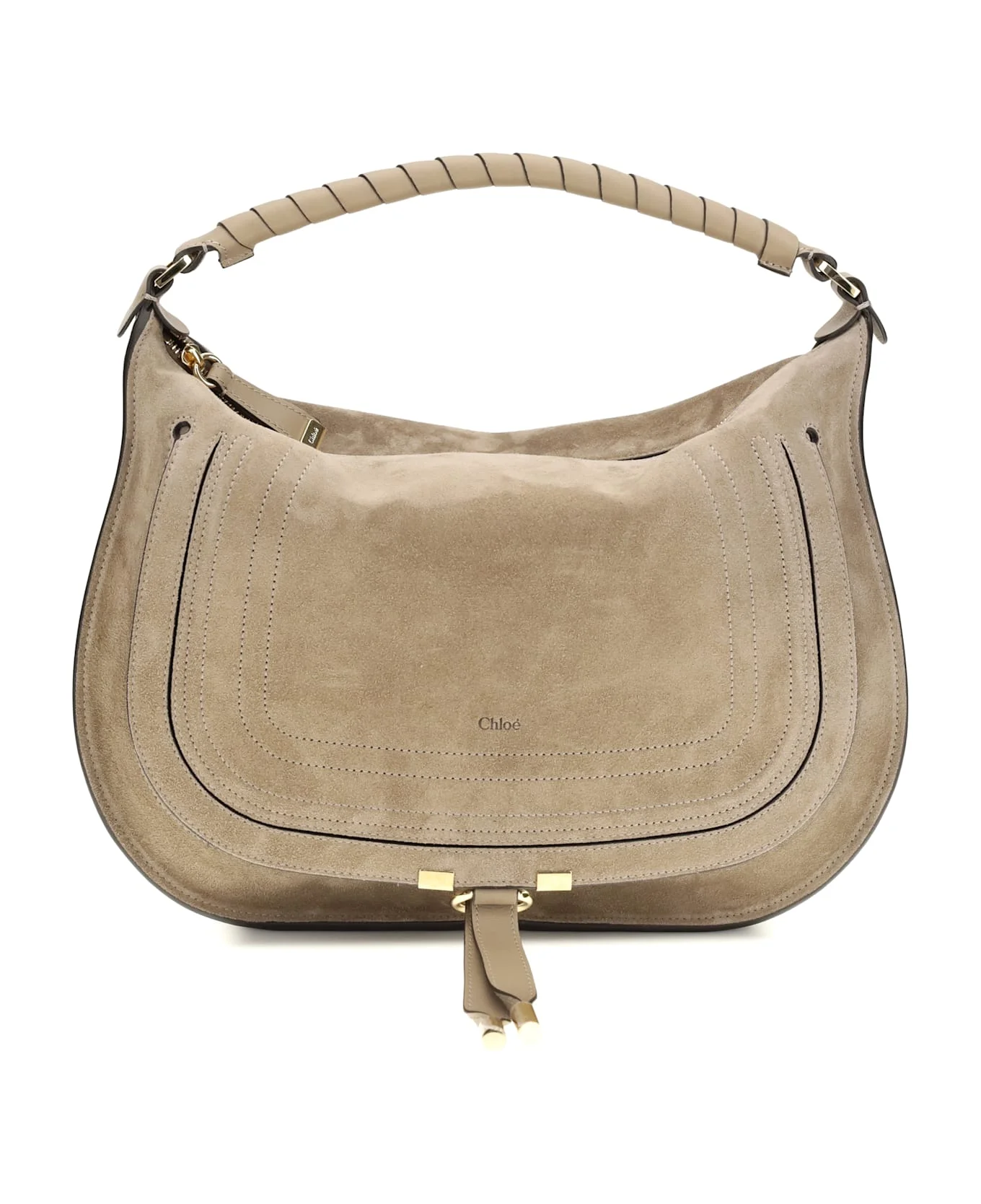 The marcie suede leather shoulder bag by chloe elegantly reinterprets the maison's iconic day bag with a casual silhouette and thoughtful details. crafted from calfskin suede, it features saddle stitching, a single hand-wrapped handle, gold-tone metal hardware and leather tassels securing the flap. the interior includes a roomy main compartment, an interior flat pocket, and a front pocket hidden by the flap, while a zipper closure ensures convenience and security. Composition: 100% % Calf Leather Bos Taurus Made in: Italy Size and fit: - W 37 x H 25 x D 9.5 cm Model number: CH26SS881P3720E