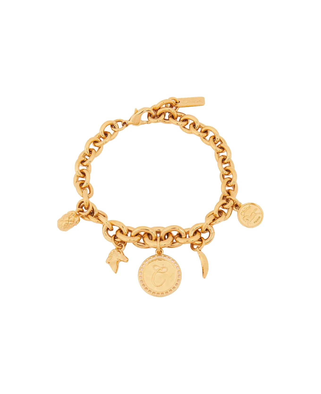 Metallic Bracelet With Charms And Chain-link Design In Brass Woman