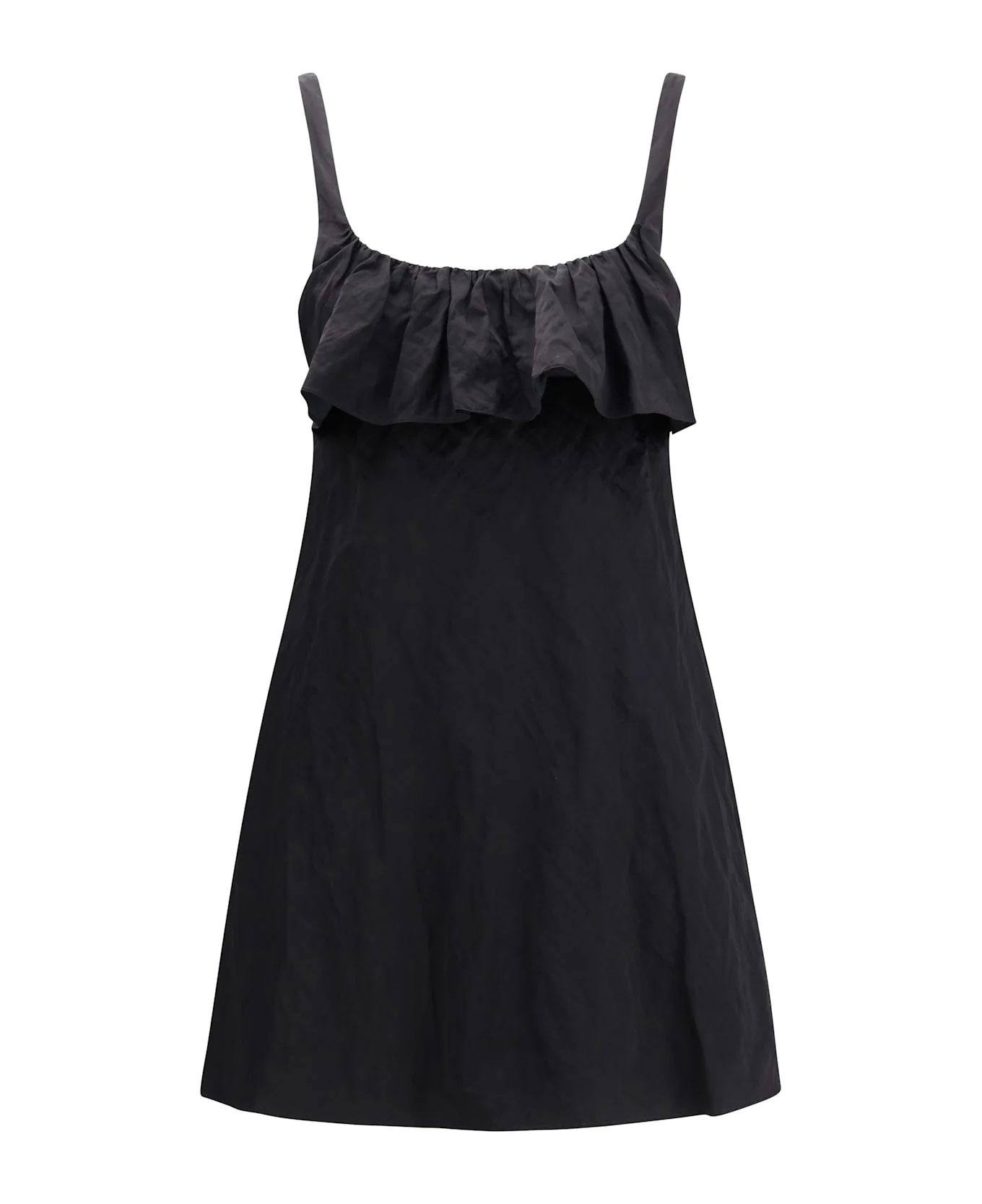The mini dress in washed technical satin, featuring a deep front neckline that creates a sensual and contemporary elegance. the design is enhanced with delicate ruffles on the chest and a back cut-out that adds a modern, refined touch. the dress includes a swimsuit-style chloe hook fastening at the back, a back zipper, and functional side pockets, blending sophisticated aesthetics with practicality. Composition: 49% % Cotton, 43% % Polyamide, 8% % Stainless Steel, 76% % Acetate, 24% % Silk Made in: Italy Model number: CH26SRO20010001
