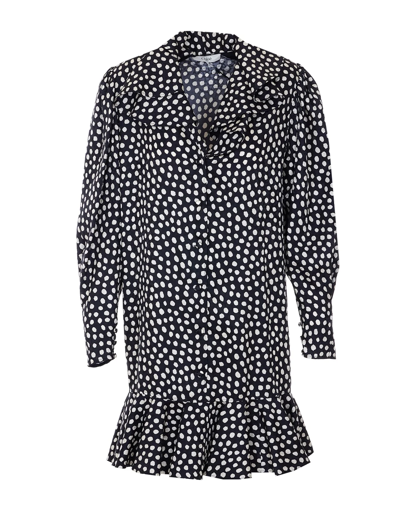 Chloe black dress, v-neck, buttons closure, long sleeves, rouches detail, all over dots print, reinforced shoulder Composition: 100% Silk, 76% Acetate Fiber, 24% Silk Made in: Italy Color: Black Size and fit: - EU SIZE (IT) Model number: 26SRO37300915