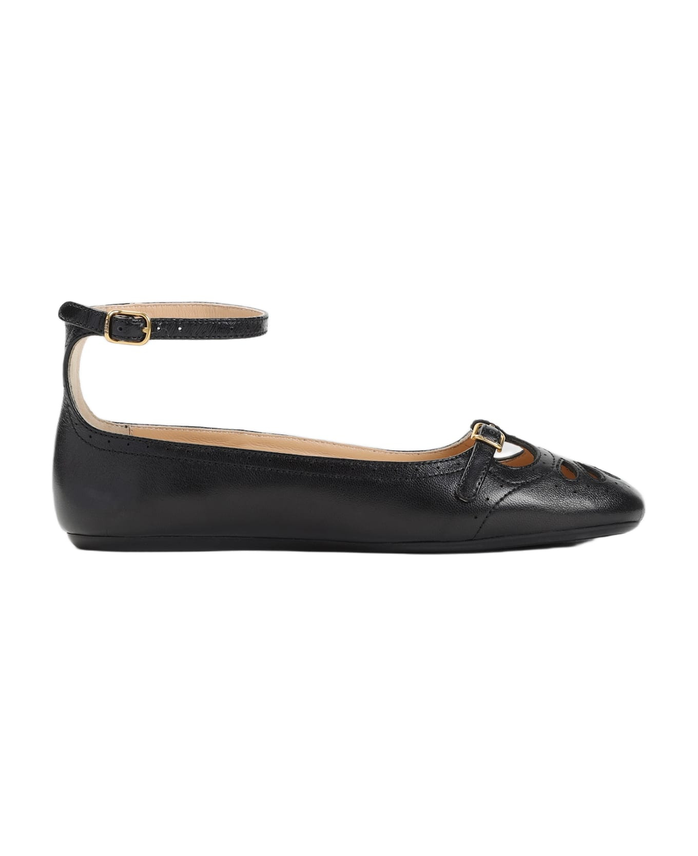 Chloe Black Leather Misty Ballerinas. Pure black leather ballerinas, round toe, top cut-out details, top adjustable tonal leather strap, ankle adjustable strap, flat design, tonal sole, gold-tone hardware. Made in: Italy Color: Black Model number: CH25W14VUN001