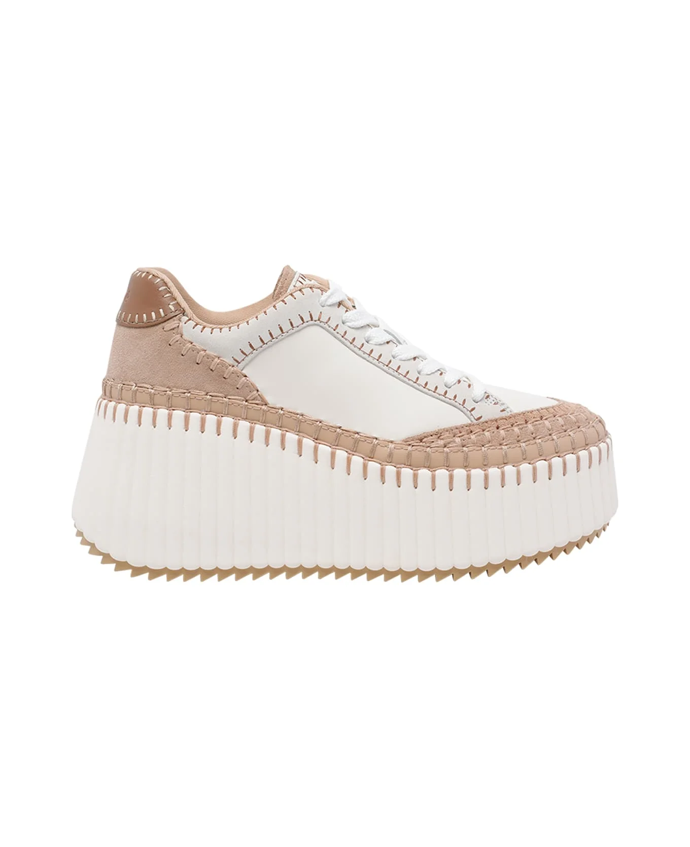 Chloe' beige Nama wedges sneakers, round toe, leather upper, laces closure, platform model Composition: 100% Calf Leather/rubber Sole Made in: Vietnam Color: Beige Size and fit: - Platform 8 cm Model number: C24U02IBD70F