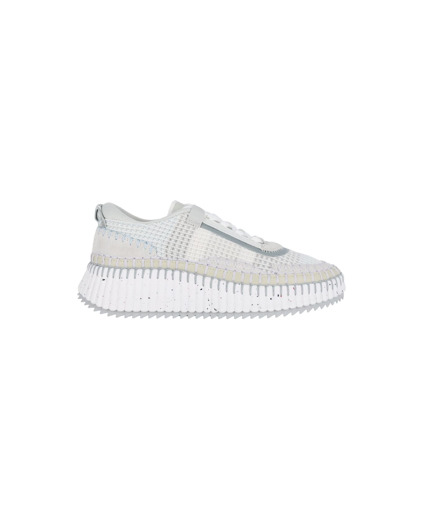 Chloe "Nama" sneakers in gray fabric with multicolor details, suede trim, round toe, lace-up closure, logo embossed on the back tab, textured rubber platform sole. Composition: 100% Polyester Made in: Vietnam Color: Gray Size and fit: - tacco 5 cm Model number: C22S579Y001A