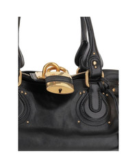 black, padlock detail, leather, gold-tone studs, top handles. Composition: 100% Leather Lamb Made in: Italy Color: Black Size and fit: - W DEPTH x H x D cm handle 18 cm - HEIGHT Model number: CH25WS802P75001