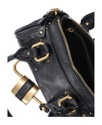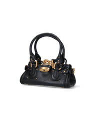 Chloe small Paddington bag in black hammered buffalo leather with two top handles, zip closure and gold padlock, leather logo on the padlock, key charm detail, adjustable gold metal buckles on the sides, all-over studs, flat front pocket, flat back pocket, inner zip pocket, main inner compartment. Composition: 100% Buffalo Leather Made in: Italy Color: Black Size and fit: - A 12 X L 26 X P 12 cm Model number: 26SS805P75001