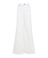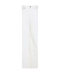 Chloe White Cotton Pants. Pure white cotton pants, front concealing zipped fastening, front buttoned fastening, belt loops, five pockets design, flared leg, straight hem, tonal stitching. Color: White Model number: CH25ADP02257101