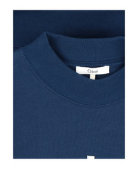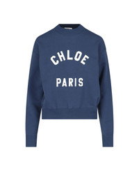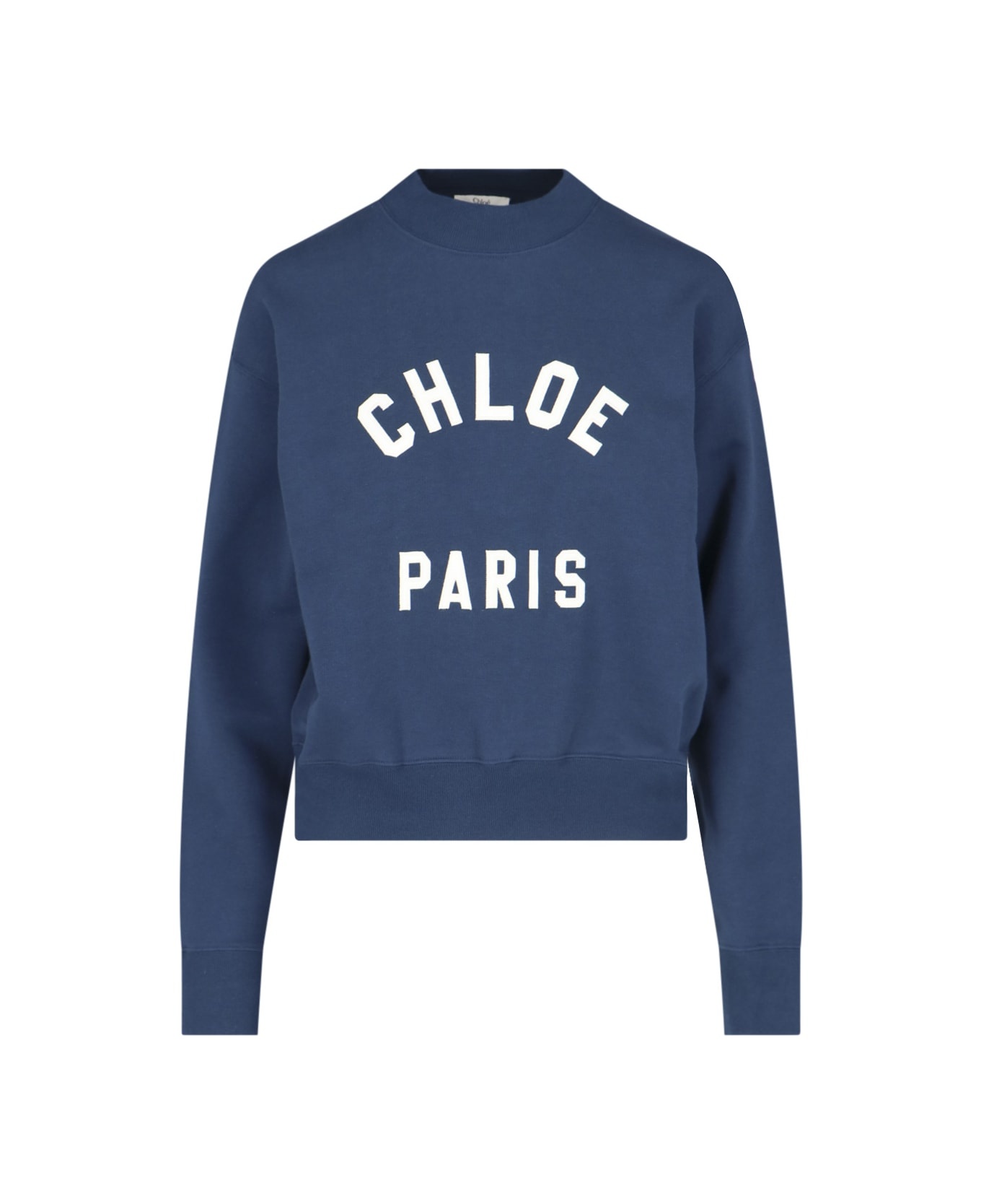 Chloe 'Paris' crew neck sweatshirt in navy blue cotton with white logo patch on the front, ribbed trims, straight hem. Composition: 100% Cotton Made in: Italy Color: BLUE Size and fit: - Vestibilita regolare Model number: 24AJH121924C6