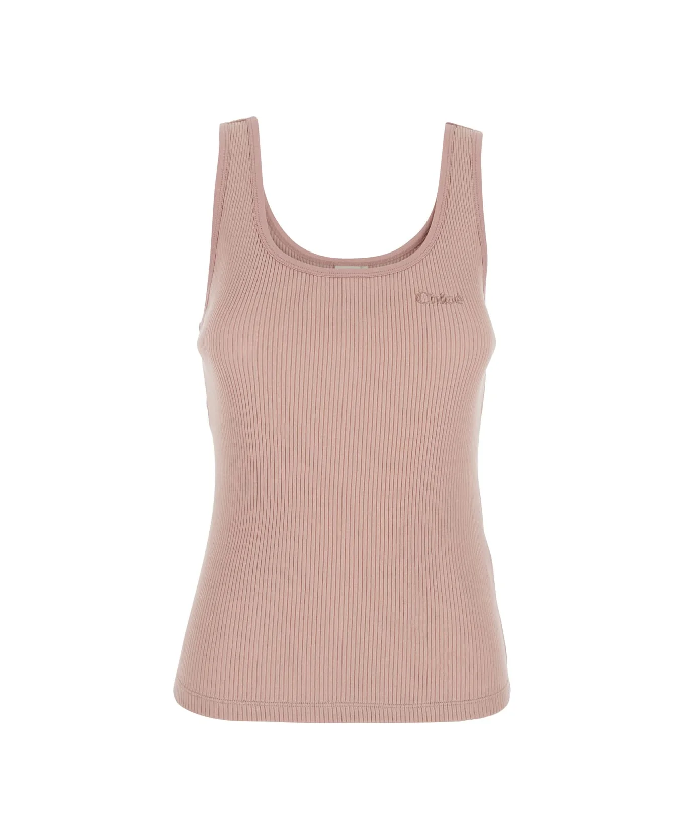 Pink Sleeveless Top With Logo Embroidery On The Front In Cotton Woman