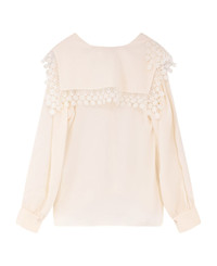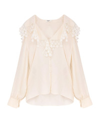 V-neckline Closure with covered buttons Long sleeves with buttoned cuffs Embroidered lace trim Made in Italy 100% silk SKU: CH25WHT15323107 Made in: France Color: ICONICMILK Model number: CH25WHT15323107