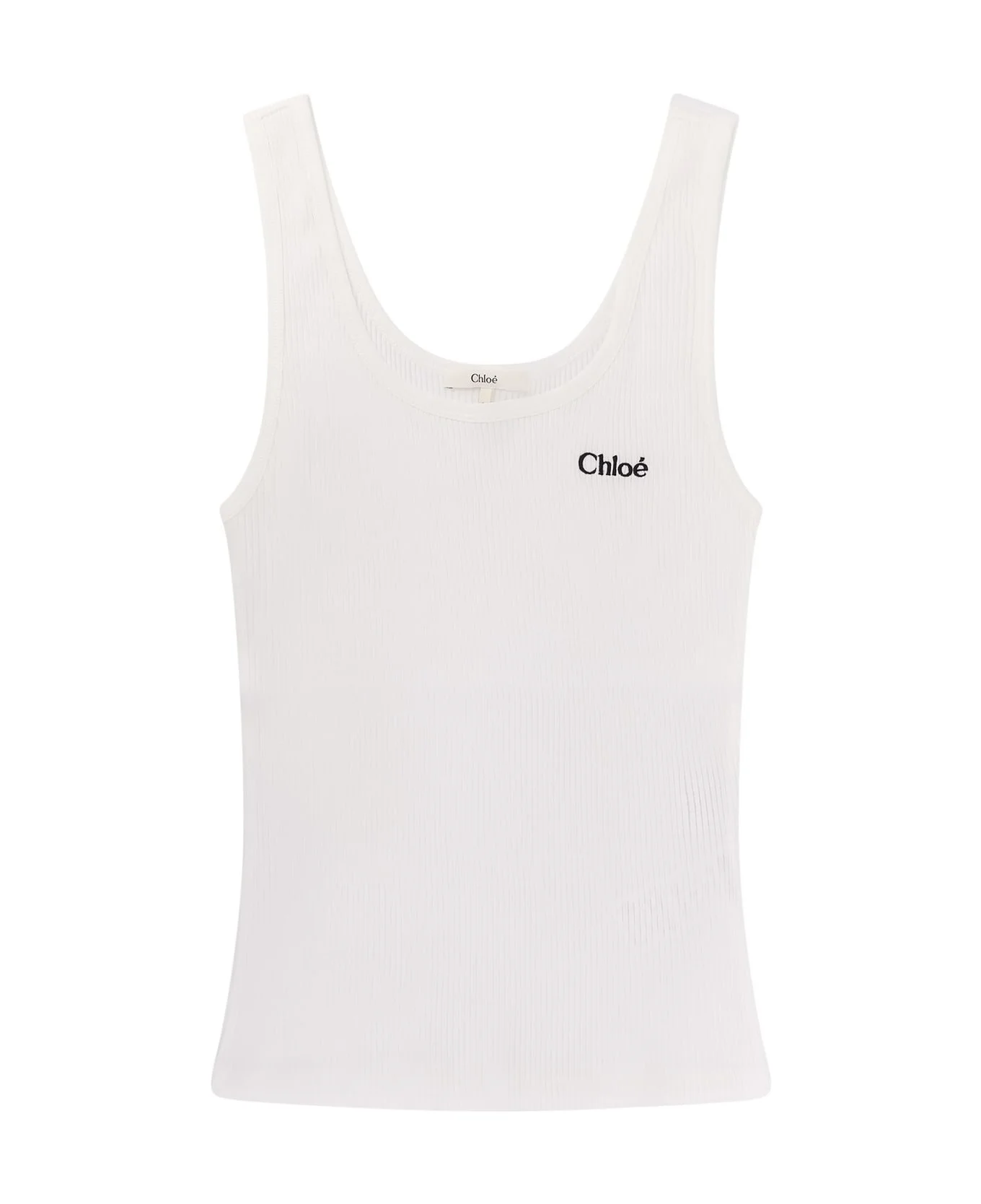 Rounded neckline Sleeveless Chloe embroidery Ribbed processing 100% cotton SKU: CH25SJH12180101 Made in: Portugal Color: White Size and fit: - W x H x D cm handle - Model number: CH25SJH12180101