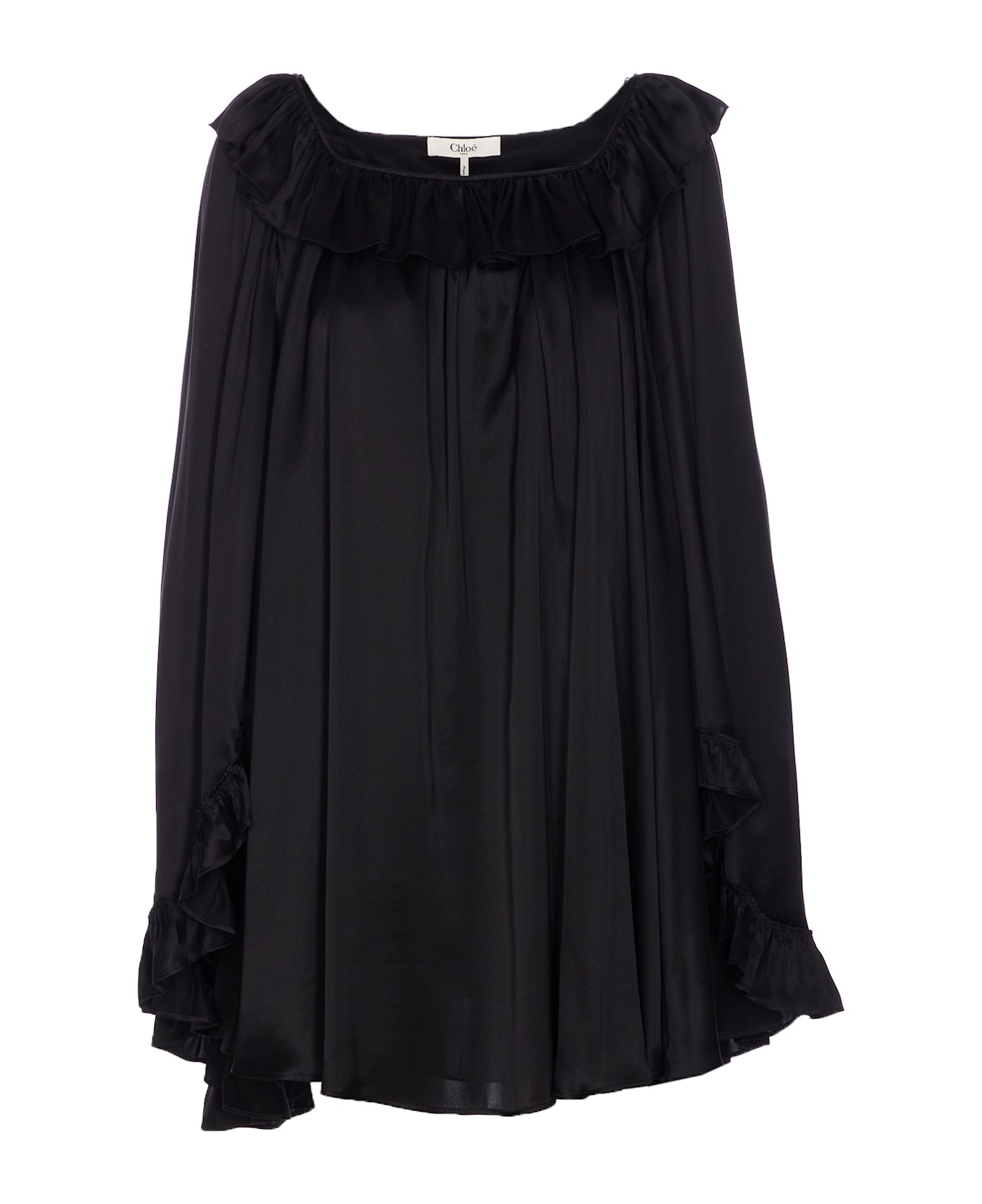 Chloe black ruffled shirt, long sleeves, oversize and flare fit Composition: 100% Silk, 68% Acetate Fiber, 32% Silk Made in: Madagascar Color: Black Size and fit: - EU SIZE (FR) Model number: 25ARO12132001