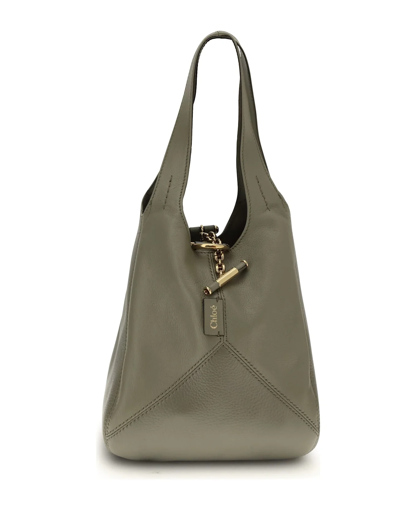 The small balloon shoulder bag by chloe combines elegance and craftsmanship. crafted from grained buffalo leather with a shiny leather patchwork, it features a main compartment and a toggle closure. it can be carried by hand or over the shoulder, perfect for a sophisticated and versatile style. Composition: 100% % Buffalo Made in: Italy Size and fit: - W 21 x H 21 x D 18 cm Model number: CH25WS644Q153D6