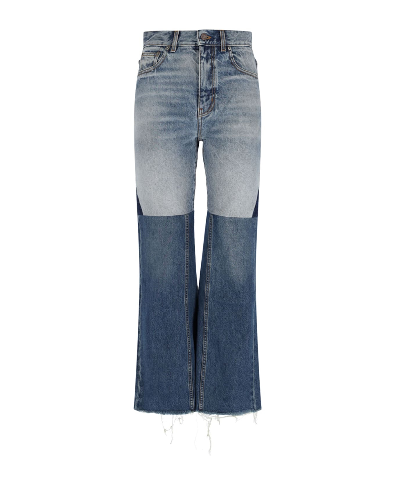 FLARED PATCHWORK JEANS IN DENIM