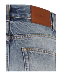 Chloe straight jeans in light blue denim with blue details, mid waist, belt loops, button and zip closure, five pockets, back logo patch, raw cut on the hem, straight leg. Composition: 100% Cotton Made in: Italy Color: Light Blue Size and fit: - vestibilita regolare Model number: 24WDP421594ZD