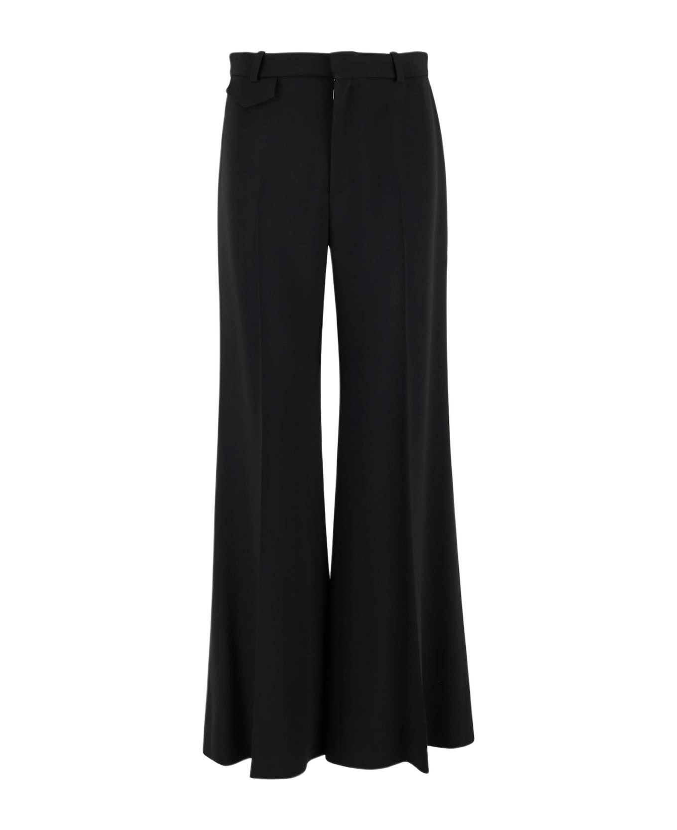 Pants made of stretch viscose blend Waist with belt loops Stretch pleats Flared leg Black Made in France Composition: 50% acetate fibers, 47% viscose, 3% elastane Made in: France Color: Black Size and fit: - Model is wearing size 40. - Model measurements: - Height: 175 cm - Chest: 86.5 cm - Waist: 65 cm - Hips: 92 cm - Shoulder: 40 cm Model number: CH25APA06263001