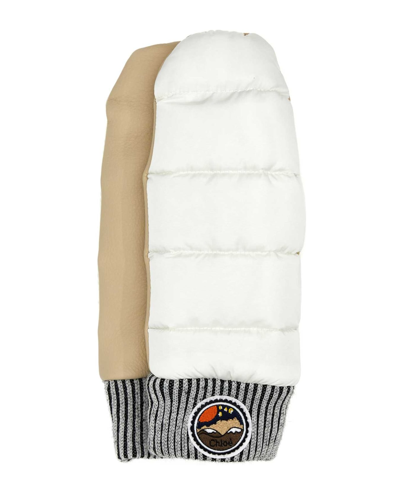 Two-tone Nylon And Leather Gloves from Chloé Made in: Italy Color: WHITEBEIGE1 Model number: CHC24SG017SKG90Z