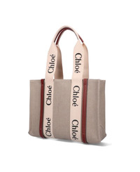 White And Brown Medium Woody Shopping Bag With Shoulder Strap