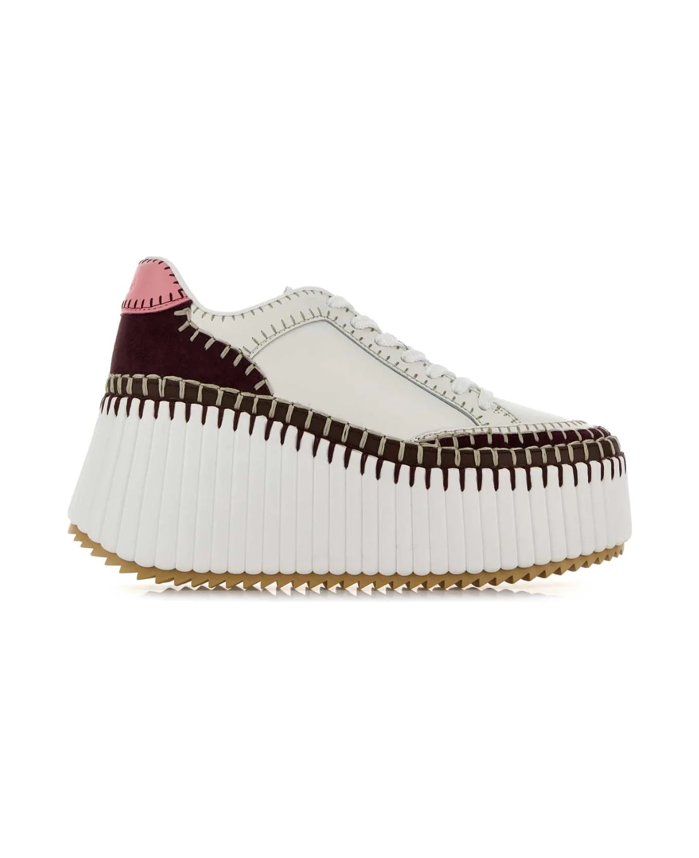 White Leather Nama Sneakers from Chloe Made in: Vietnam Color: BURGUNDYPINK Size and fit: - Platform: 6 cm Model number: CHC24U02IBD6BG