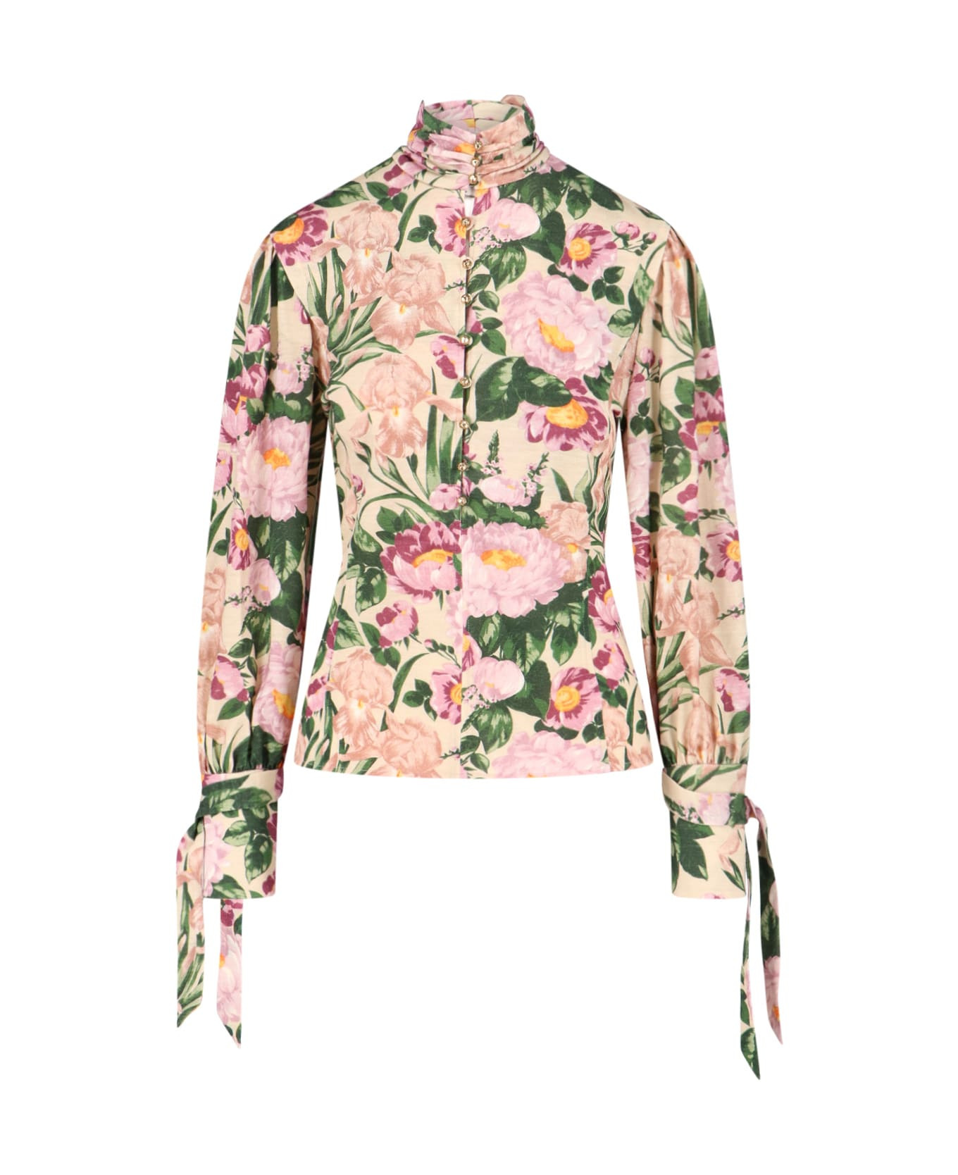 Chloe wool shirt, multicolor, floral print pattern, high neck, button closure, adjustable cuffs, straight hem. Composition: 100% Wool Made in: Italy Color: Multicolor Size and fit: - vestibilita regolare Model number: 25AHT14122293